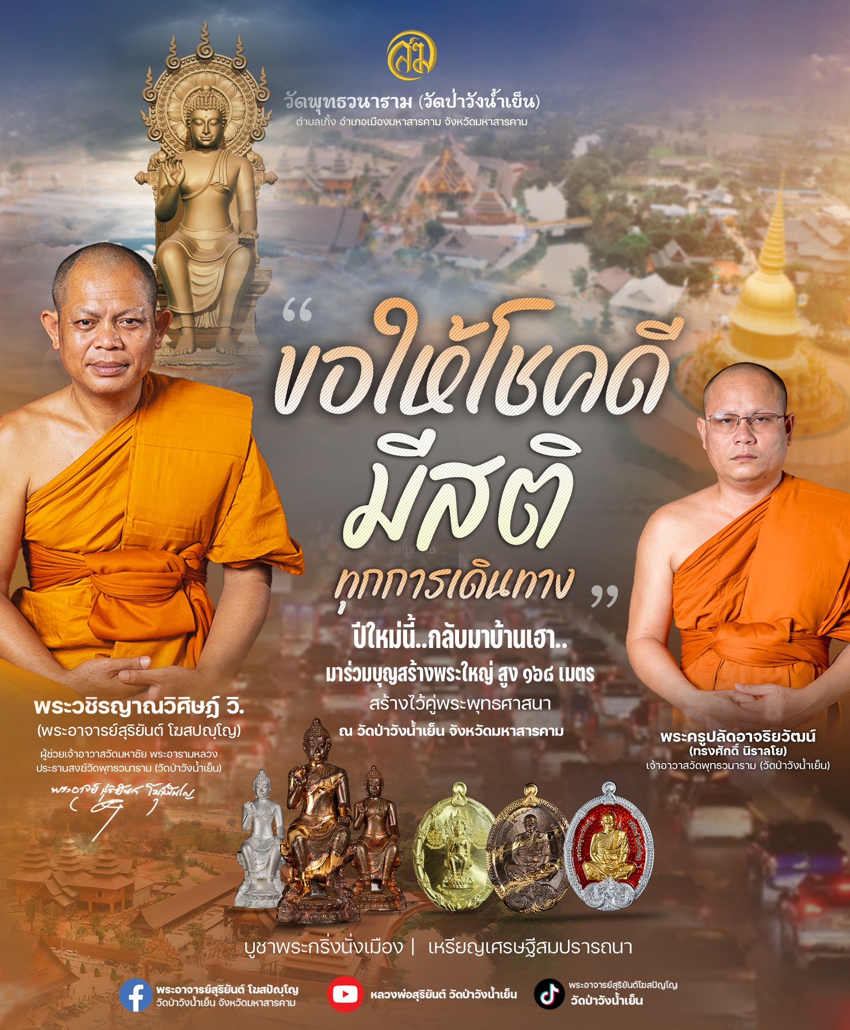 วันพฤหัสบดีที่ ๒๘ ธันวาคม พ.ศ. ๒๕๖๖ เวลา ๑๕.๕๐ น. พระวชิรญาณวิศิษฎ์ วิ. (สุริยันต์ โฆสปญฺโญ) ผู้ช่วยเจ้าอาวาสวัดมหาชัย พระอารามหลวง ประธานสงฆ์วัดพุทธวนาราม (วัดป่าวังน้ำเย็น) เป็นประธานจุดเทียนชัย และนั่งปรกอธิษฐานจิตวัตถุมงคล เหรียญที่ระลึกพระพุทธชินราชรุ่น "มั่งมี" พิธีผูกพัทธสีมาตัดหวายลูกนิมิต วัดหันเตย ตำบลประทาย อำเภอประทาย จังหวัดนครราชสีมา _______________________ #พระนั่งเมือง๑๖๘เมตรวัดป่าวังน้ำเย็น #กฐินสร้างพระองค์ใหญ่ที่สุดในโลก #พระกริ่งนั่งเมือง #เหรียญเศรษฐีสมปรารถนา #เลื่อนสมณศักดิ์ #บารมีโฆสปัญโญ เช่าบูชาวัตถุมงคล ติดต่อได้ที่ LINE: https://lin.ee/sgQijzr