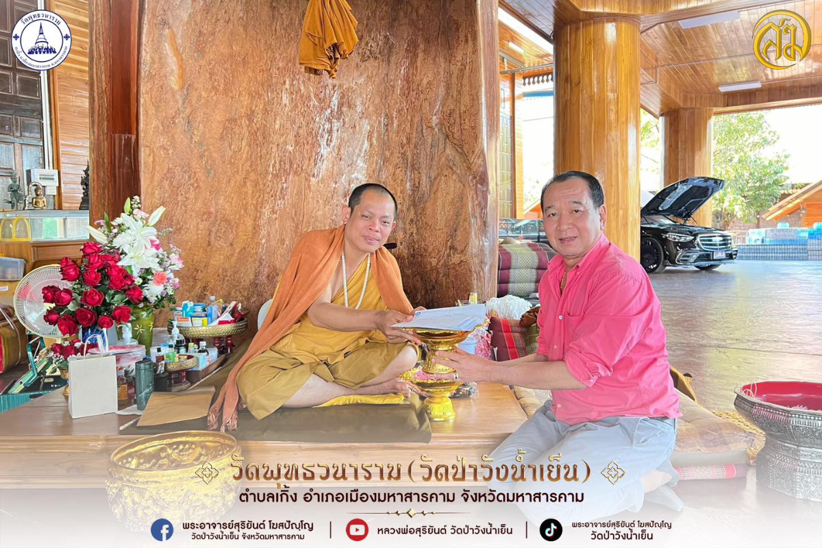 วันพฤหัสบดีที่ ๑๕ กุมภาพันธ์ พ.ศ. ๒๕๖๗ เวลา ๑๖.๔๓ น. พระวชิรญาณวิศิษฏ์ วิ. (สุริยันต์ โฆสปญฺโญ) ผู้ช่วยเจ้าอาวาสวัดมหาชัย พระอารามหลวง ประธานสงฆ์วัดพุทธวนาราม (วัดป่าวังน้ำเย็น) ให้ความเมตตา สนับสนุน ส่งเสริมการศึกษาแก่สถาบันการศึกษาและเยาวชน ในจังหวัดมหาสารคาม โดยมี ร.ต.อ. นิรันดร์ ยศพล นายกสมาคมกีฬามวยภาคตะวันออกเฉียงเหนือ ผู้ประสานงานจัดการแข่งขันมวยมันสนั่นเมืองมหาสารคาม จัดโดยบริษัทเพชรยินดี และ คณะศิษยานุศิษย์พระอาจารย์สุริยันต์ โฆสปญฺโญ ซึ่งมี นายสุทิน คลังแสง รัฐมนตรีว่าการกระทรวงกลาโหม ประธานจัดการแข่งขัน ในโอกาสนี้ ร.ต.อ. นิรันดร์ ยศพล เป็นตัวแทนรับมอบ แก่สถานบันการศึกษามีรายการดังต่อไปนี้ ๑. ศูนย์เรียนรู้การฟื้นฟูสมรรถภาพคนตาบอดโดยชุมชน มูลนิธิธรรมิกชนเพื่อคนตาบอดในประเทศไทย ในพระบรมราชูปถัมภ์ ๒๐,๐๐๐ ๒. คณะกรรมการส่งเสริม มหาวิทยาลัยราชภัฏมหาสารคาม จำนวนเงิน ๒๐,๐๐๐ บาท ๓. โรงเรียนอนุบาล มหาสารคาม จำนวนเงิน ๒๐,๐๐๐ บาท ๔. สมาคมผู้ปกครอง โรงเรียนสารคามพิทยาคม จำนวนเงิน ๒๐,๐๐๐ บาท ๕. สมาคมผู้ครอง โรงเรียนผดุงนารี จำนวนเงิน ๒๐,๐๐๐ บาท ๖. โรงเรียนเมืองมหาวิชานุกูล จำนวนเง